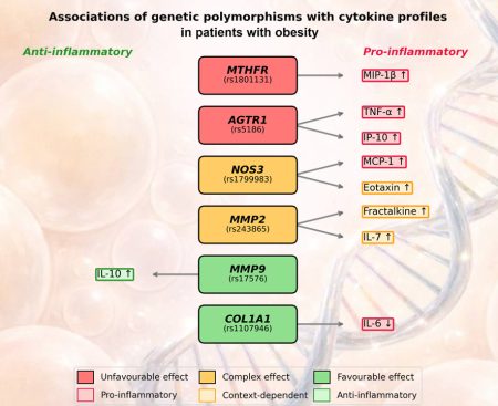 учёных — связь между генетическими вариантами, уровнем цитокинов и различиями в воспалительном ответе у пациентов с ожирением. Исследование показало, что отдельные генетические варианты могут быть ассоциированы с изменением уровня воспалительных маркеров в плазме крови.